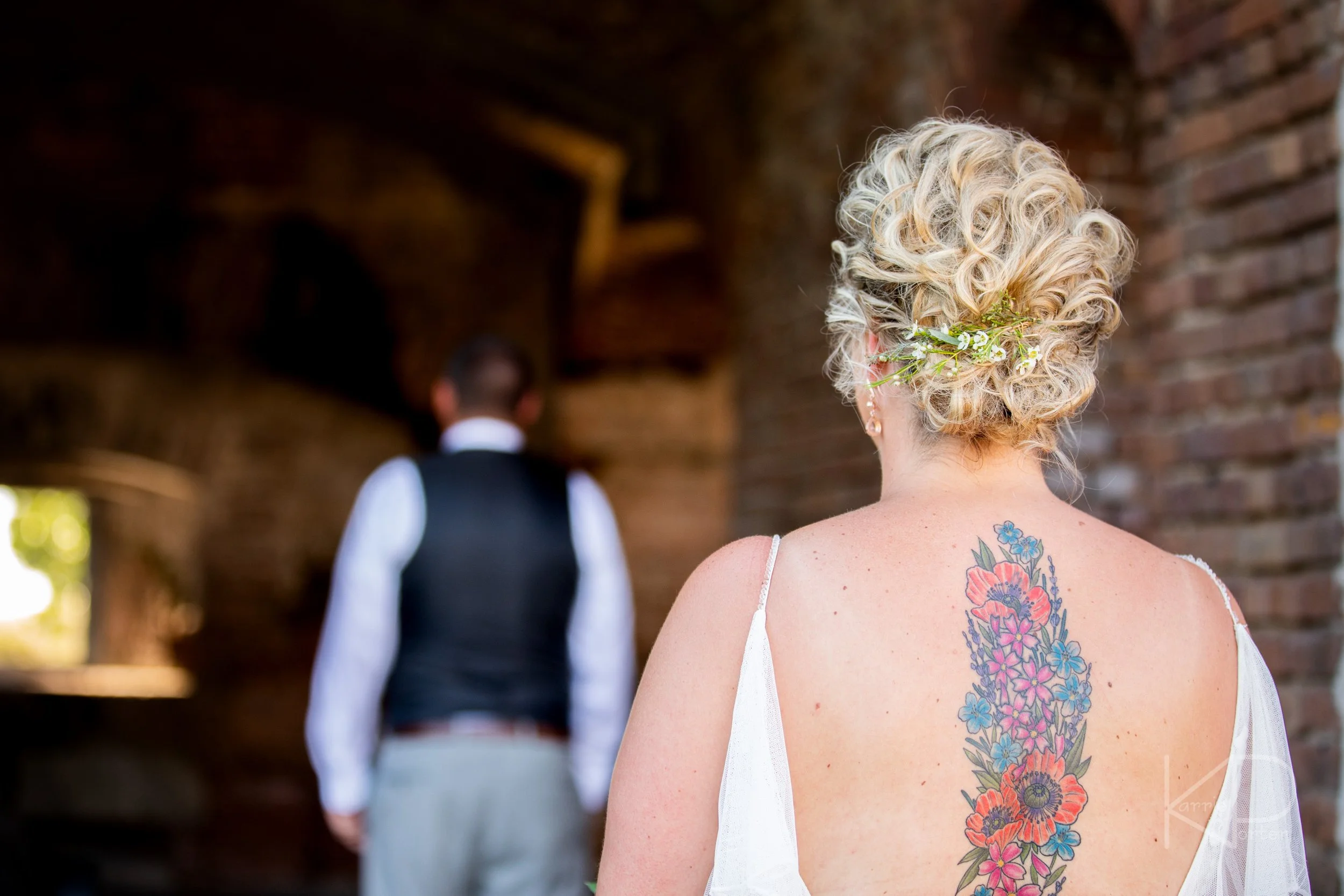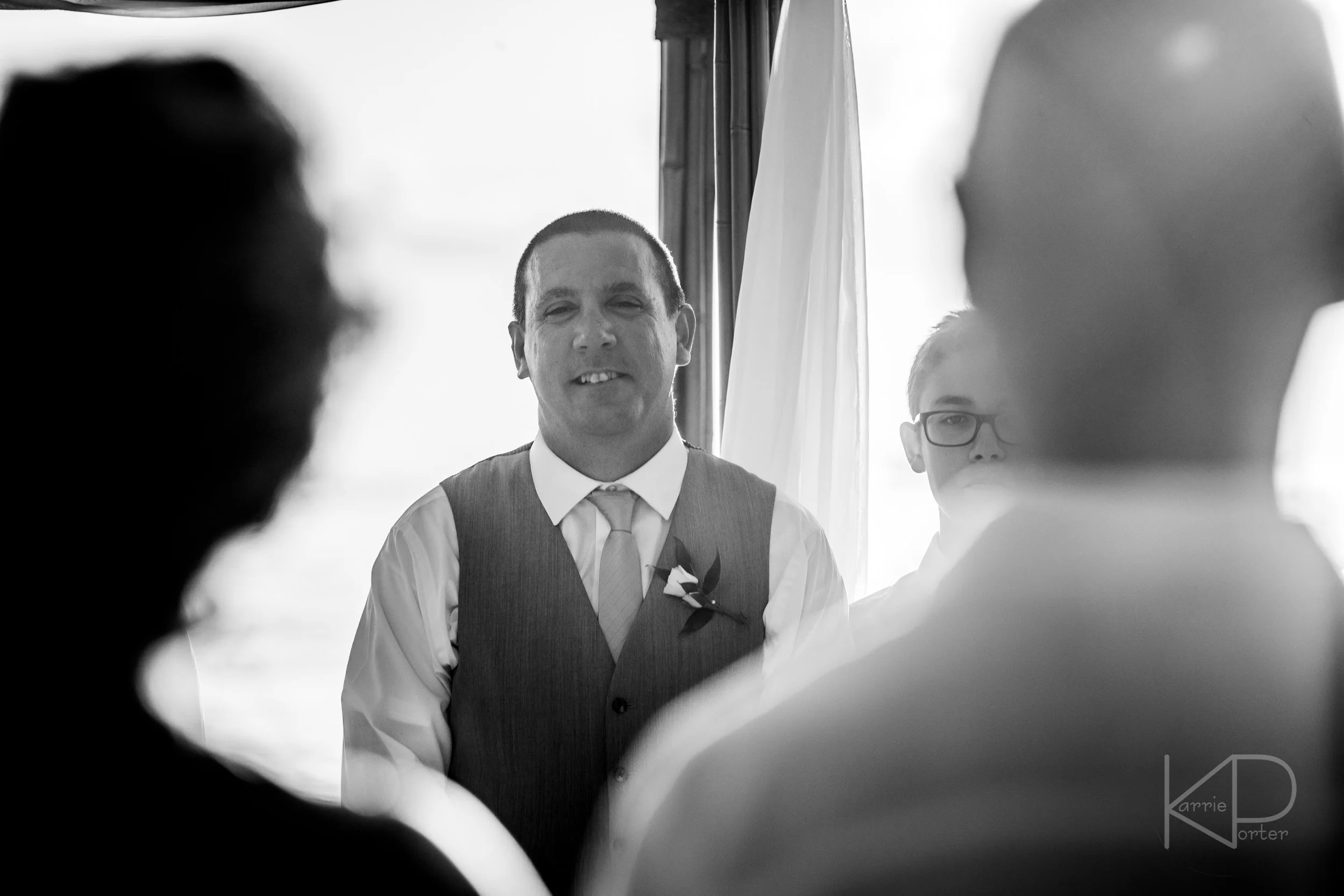 At last, it was time to get married! As I grabbed some photos of guests arriving, the groom got his flower pinned on and the bride snuck down the walking path to wait for her cue with her father.