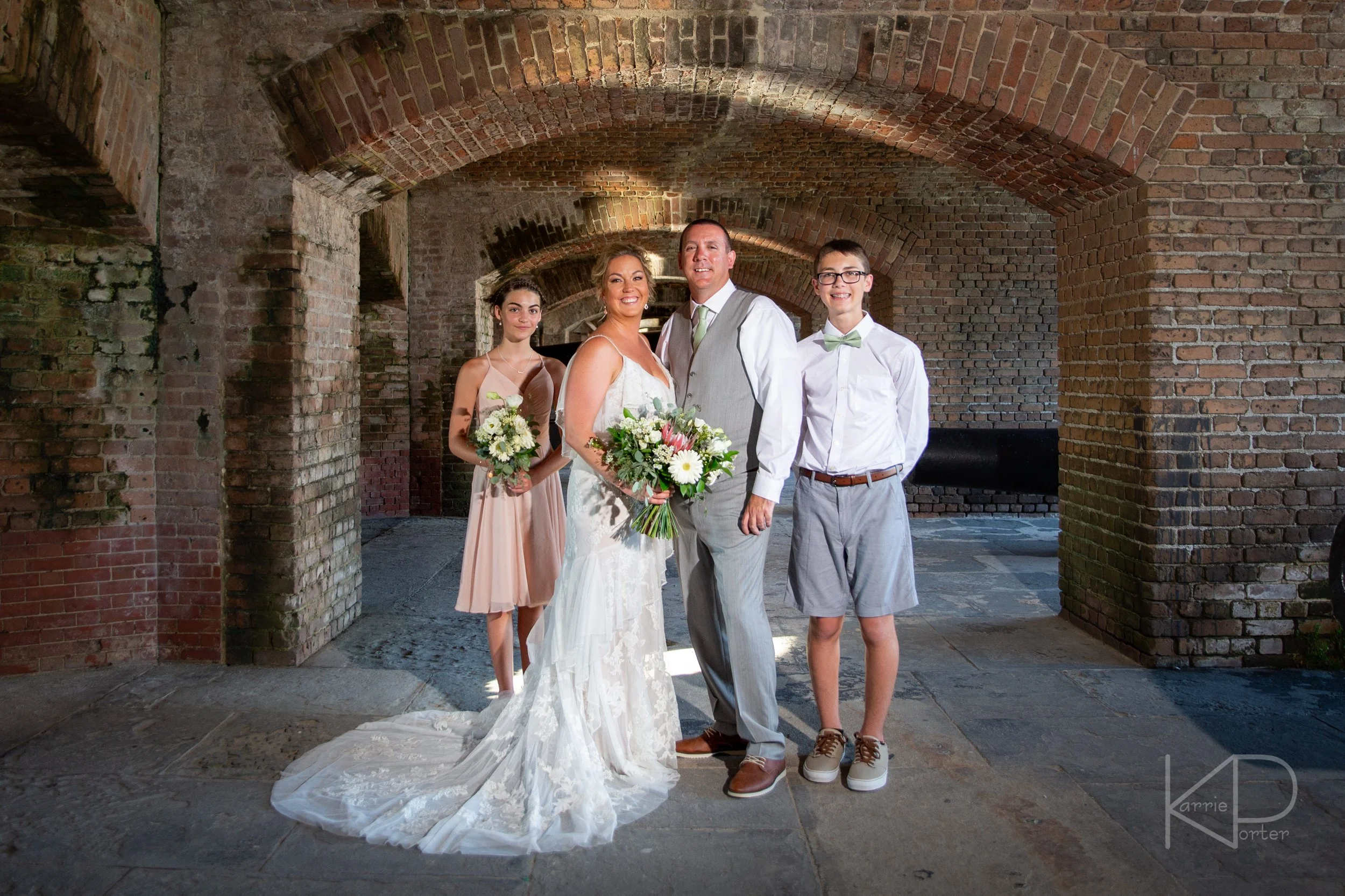 We took advantage of not only the fortress's cool shaded interiors, but it’s dramatic rows and architecture for some couples portraits and individual photos of the bride and groom. The kids also jumped in for a few as well, and there were lots of smiles and giggles from this fun-loving and friendly couple.