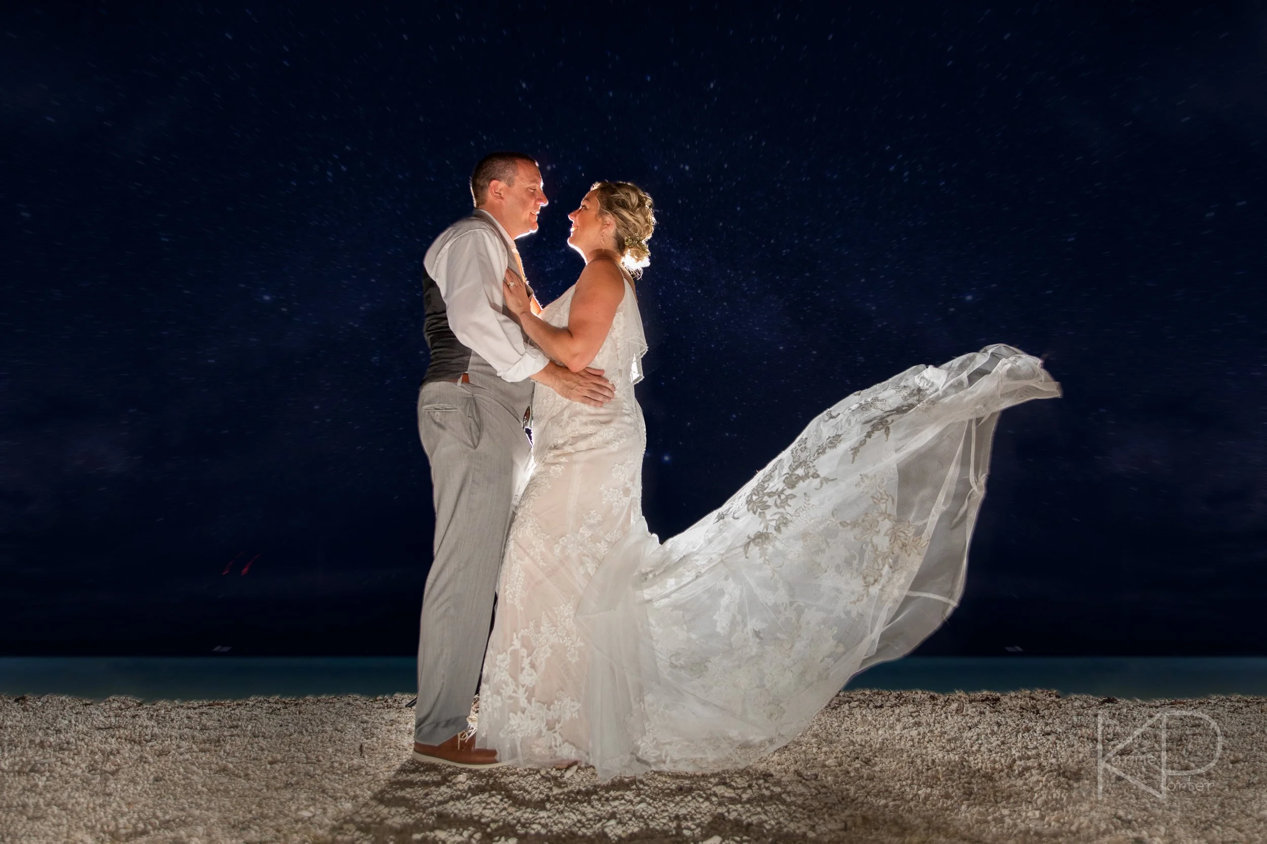 The night continued with lots of love and laughter, a toast by their daughter, and words of thanks by the couple to their guests. Everyone had dinner, danced, and had a great time with the newlyweds. We wrapped up the evening with some final night shots on the beach, then said our goodbyes and wished everyone well!